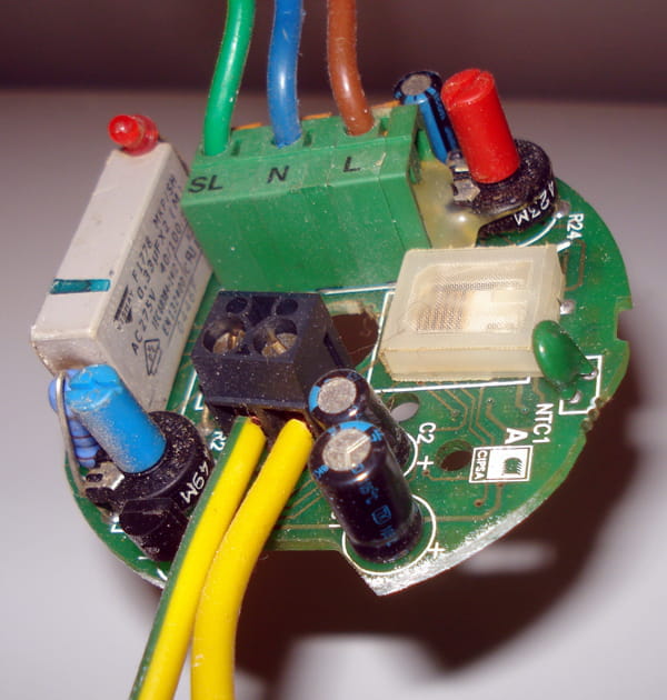 - le potentiomètre rouge est indiqué hygro. Je n'y ai pas touché car étant dans le faux plafond, je doute qu'il détecte quelque chose.