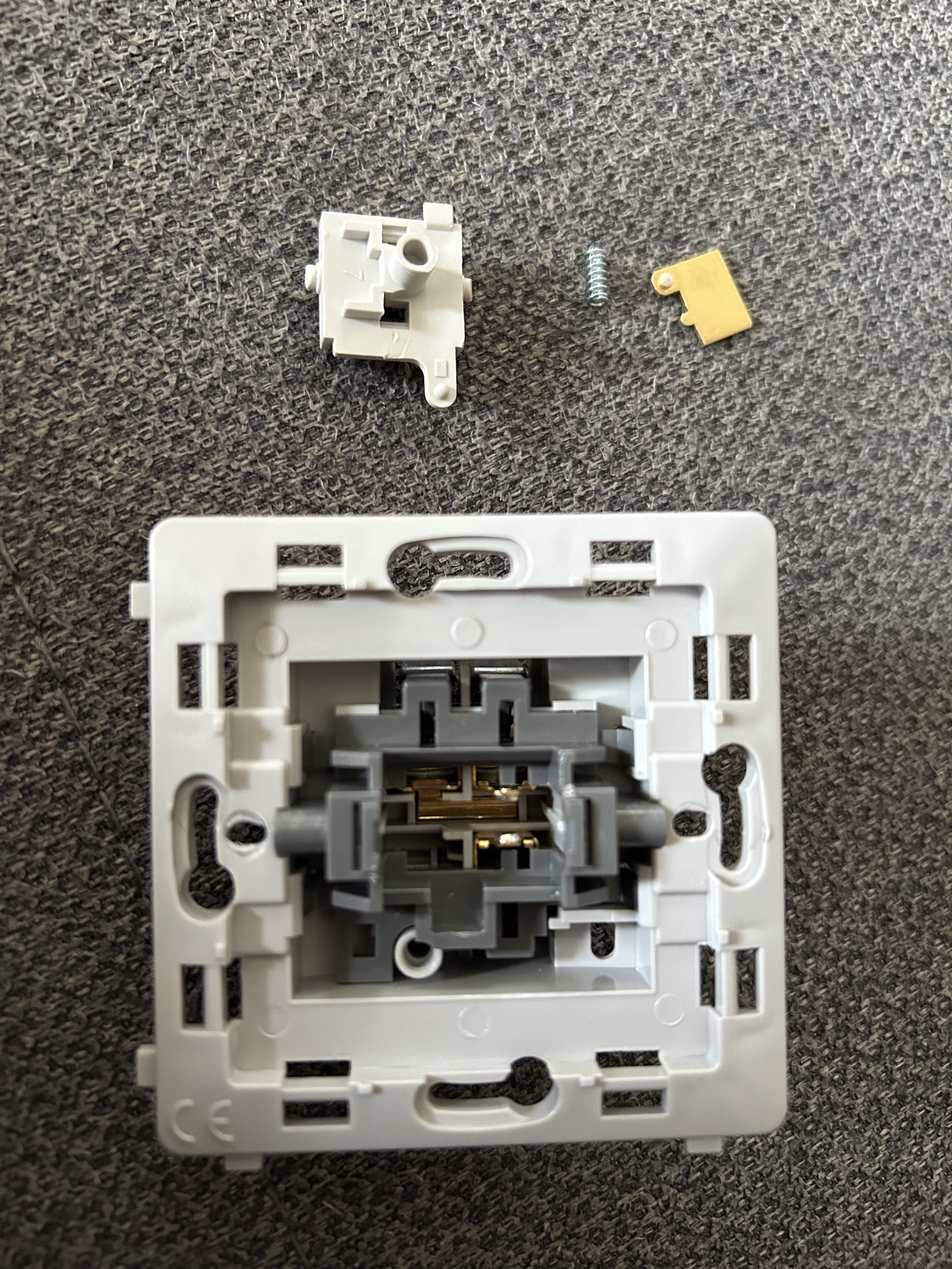 Pour ma part j'ai démonter le support blanc c'est plus facile à remettre la lamelle et le ressort dans le bouton