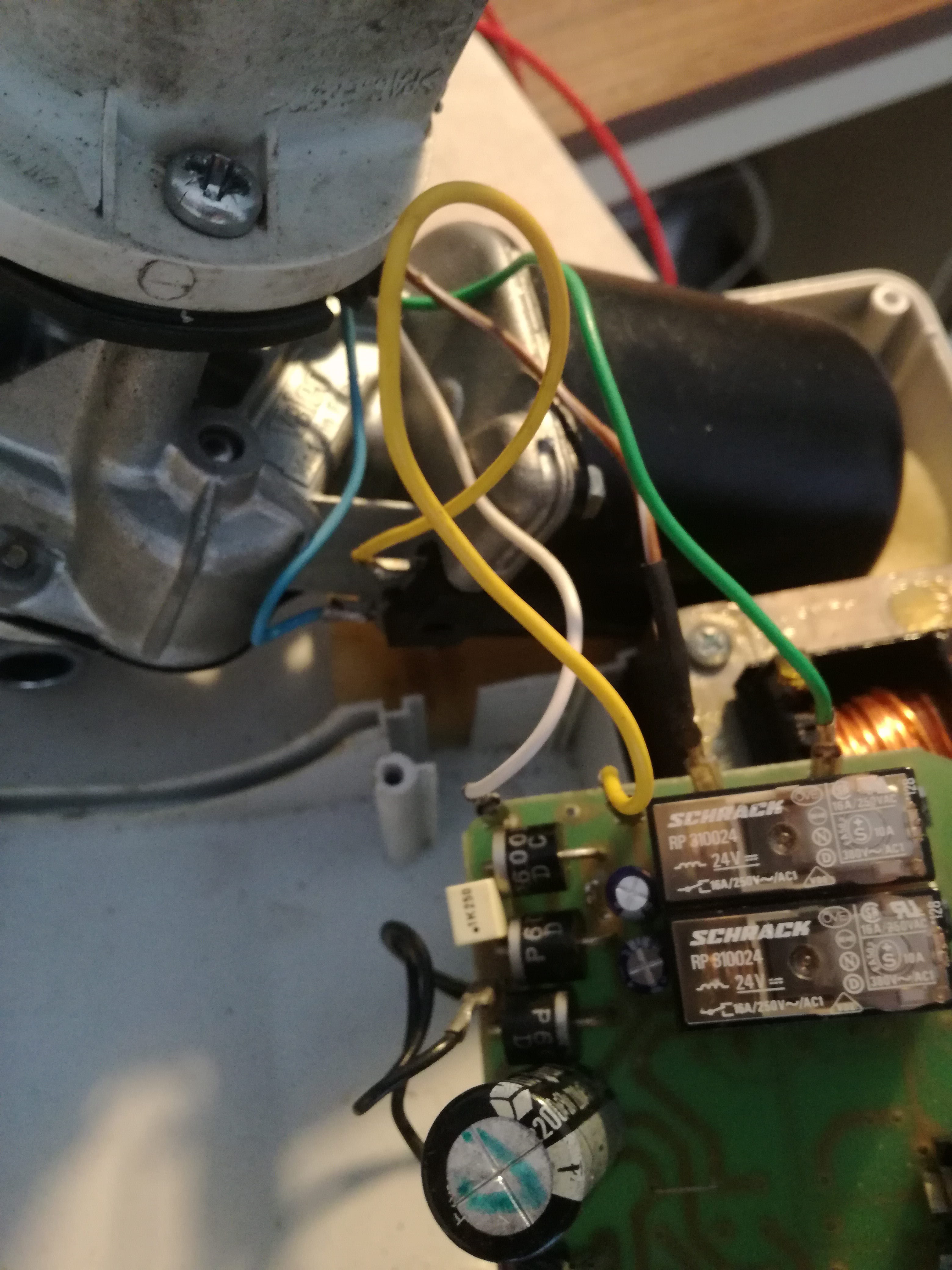 Merci fred, il est vrai que cela n'est pas évident sur photos. Concernant la pine de connexion arraché j'en doute fort car il n'y a pas de dommage et tout est propre, on retrouve la meme chose au bord de la platine aussi propre. Par contre sur la derniere photo un pont devait exister pour relier les pistes pour les relais, d'ou la panne, les relais de descente claque, mais ne fonctionne pas, le problème devrait venir de la. Avec un ami nous constatons que le fil bleu est un fin de coursse ainsi que le fil blanc, le fil marron/blanc est un fil permanent que l'on retrouve en fil rouge en fin de cordon de fiche din. Nous avons tester le fil rouge et vert et cela n'a rien donner ainsi que le fil jaune( certainement ces deux fils servent de commande dixit télécommande). Concernant les interrupteur ils sont d'origine 2 avec bouton noir et 2 avec bouton rouge, ils sont relier entre eux de part et d'autre de la table. Je vais tester et faire un pont sur les 3 points nous verrons bien, mais oui attention aux fin de coursses desactivées. Quelle belle ebauche de schéma tu as réaliser la c'est vraiement top. On progresse je sens que l'on est pas loin de régler ce problème, merci de tout coeur pour votre détermination. Bonne soirée et dodo. A bientot de ce lire.