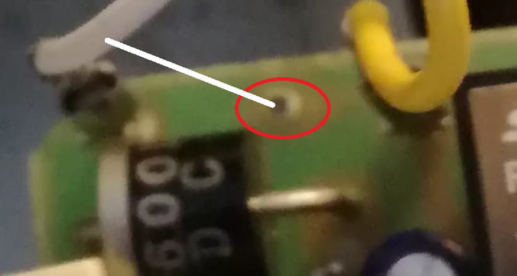 Sur la carte il me semble qu'une pine de connexion pour un câble est arrachée, car en étudiant la carte je dirais que le fil blanc du vérin devrait être connecté sur cette pine manquante et pas à l'emplacement actuel comme le montre la photo.