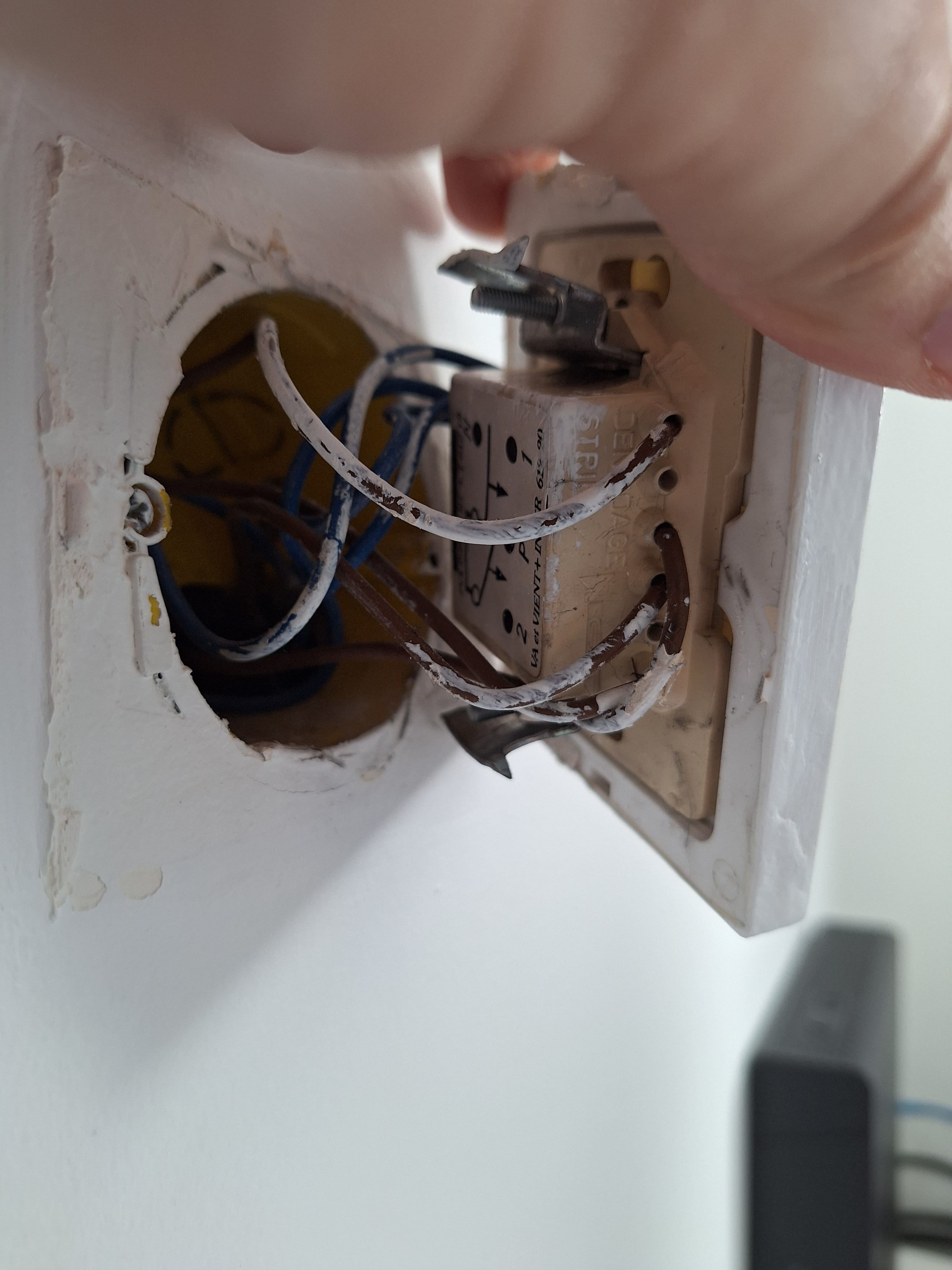 Si ok, vérifiez que les autres volets fonctionnent toujours et si toujours OK débranchez tous les fils bleus de l'ancien interrupteur et raccordez ensemble avec un domino (à placer au fond de la boite).