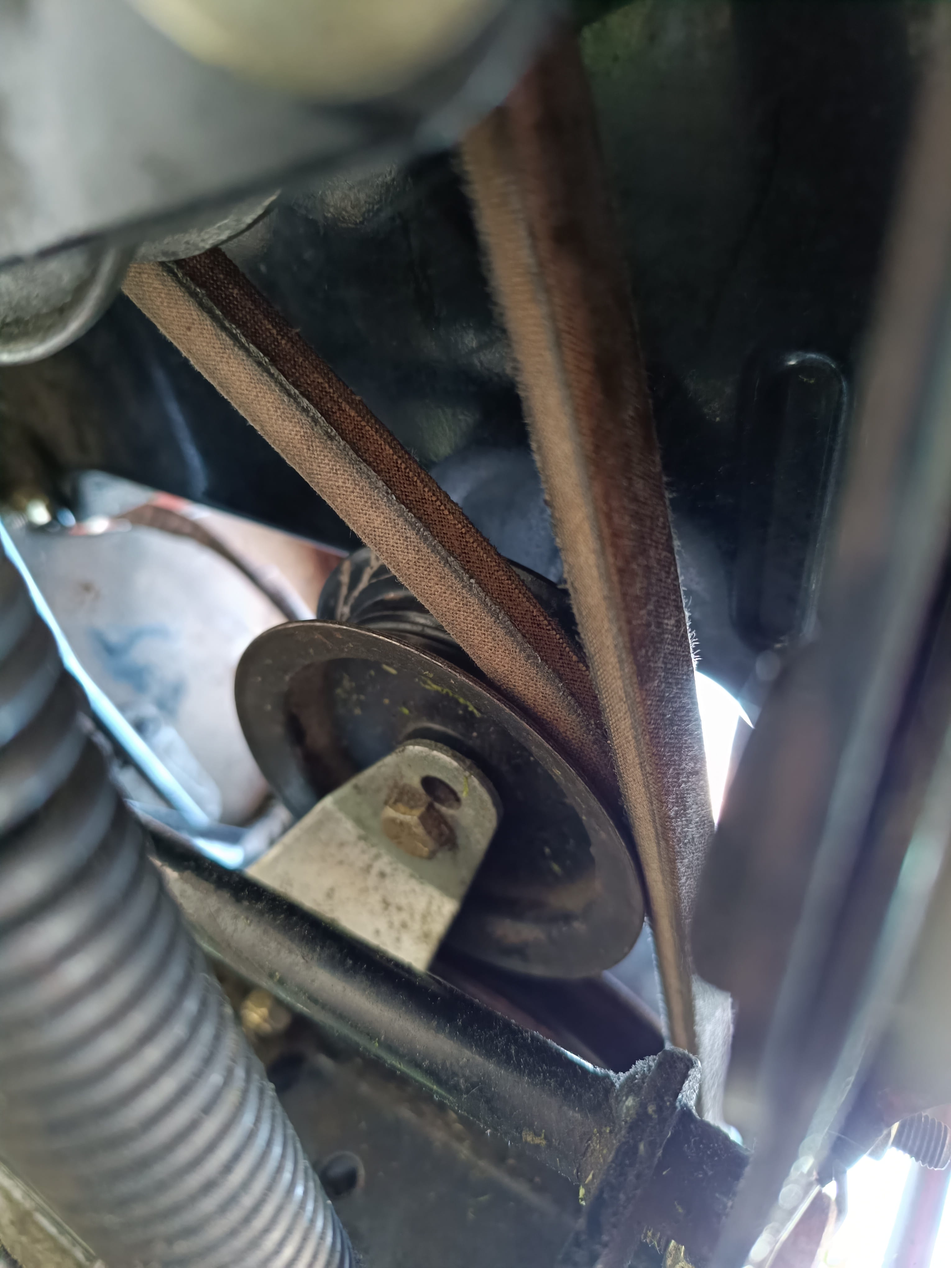 Je sèche. La situation empire. J'ai changé la courroie variateur pont par une origine MTD 754-04038 étonnant elle est plus longue que celle que j'avais, résultats avec la poulie tendeur elle frotte et donc elle s'use.