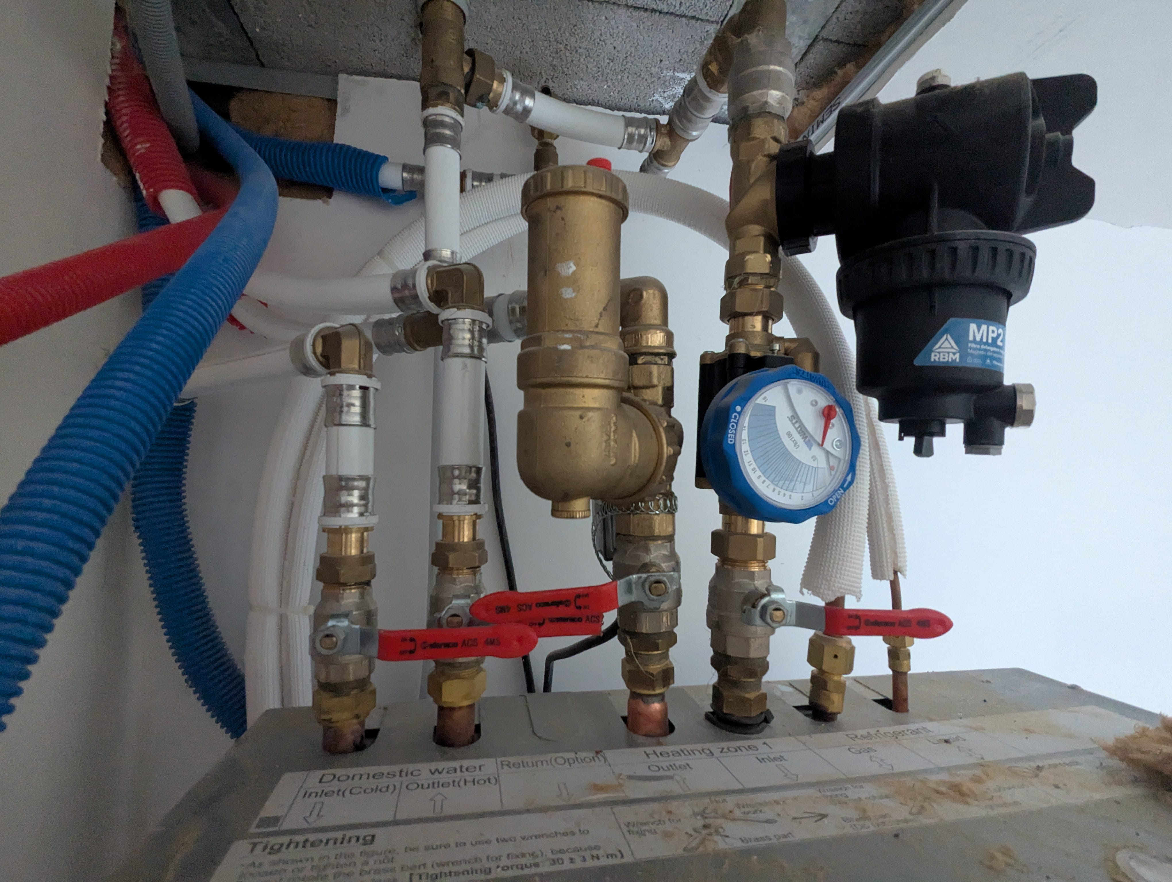 (la gaine bleu qui revient sur le coté gauche c'est un "bouclage d'eau chaude pour la douche" qu'il n'a même pas raccordé)