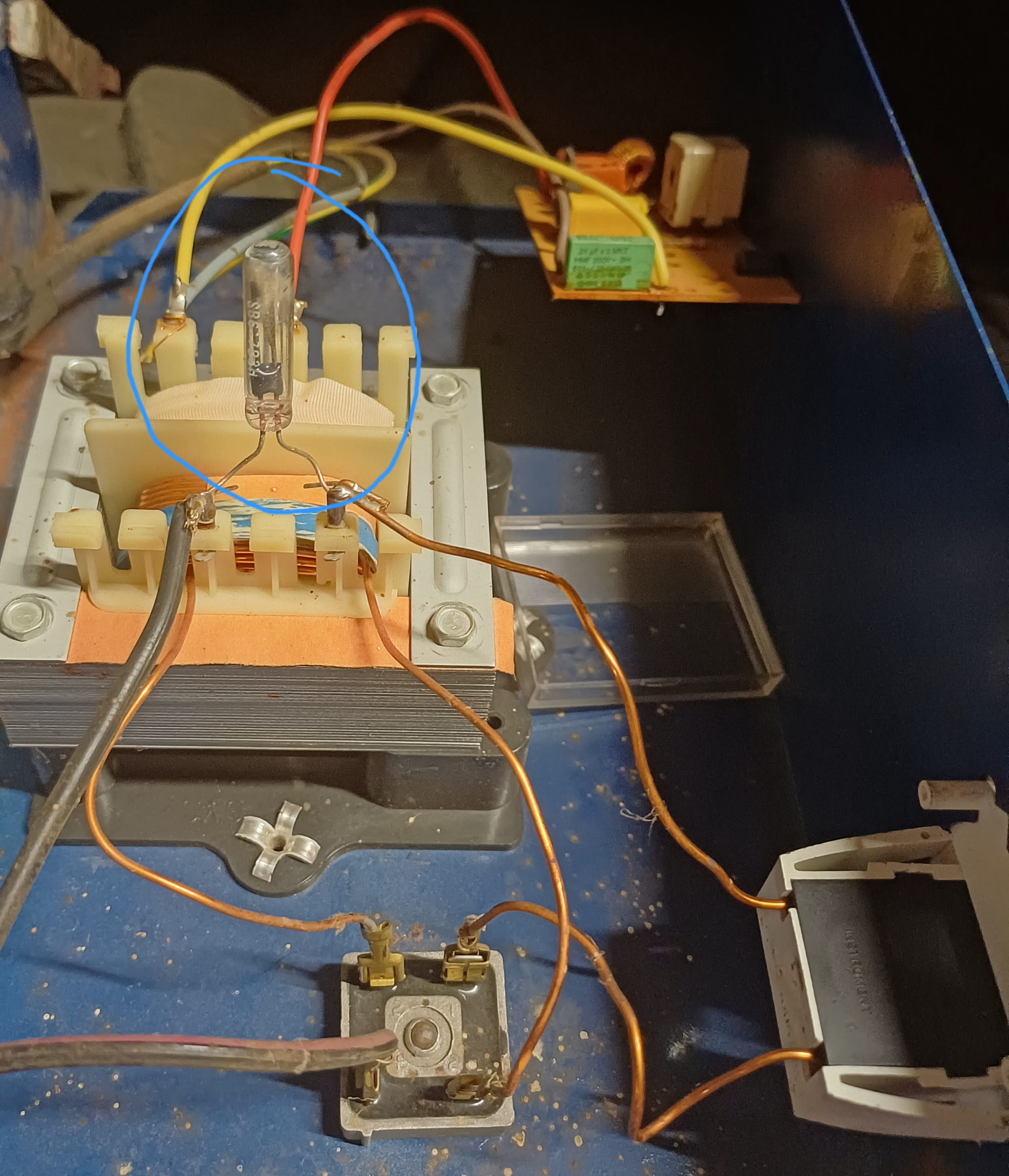 Est-ce que quelqu'un pourrais me dire de quoi cela pourrait provenir sachant que la pièce cylindrique en verre au-dessus du transformateur est un peu noir ?