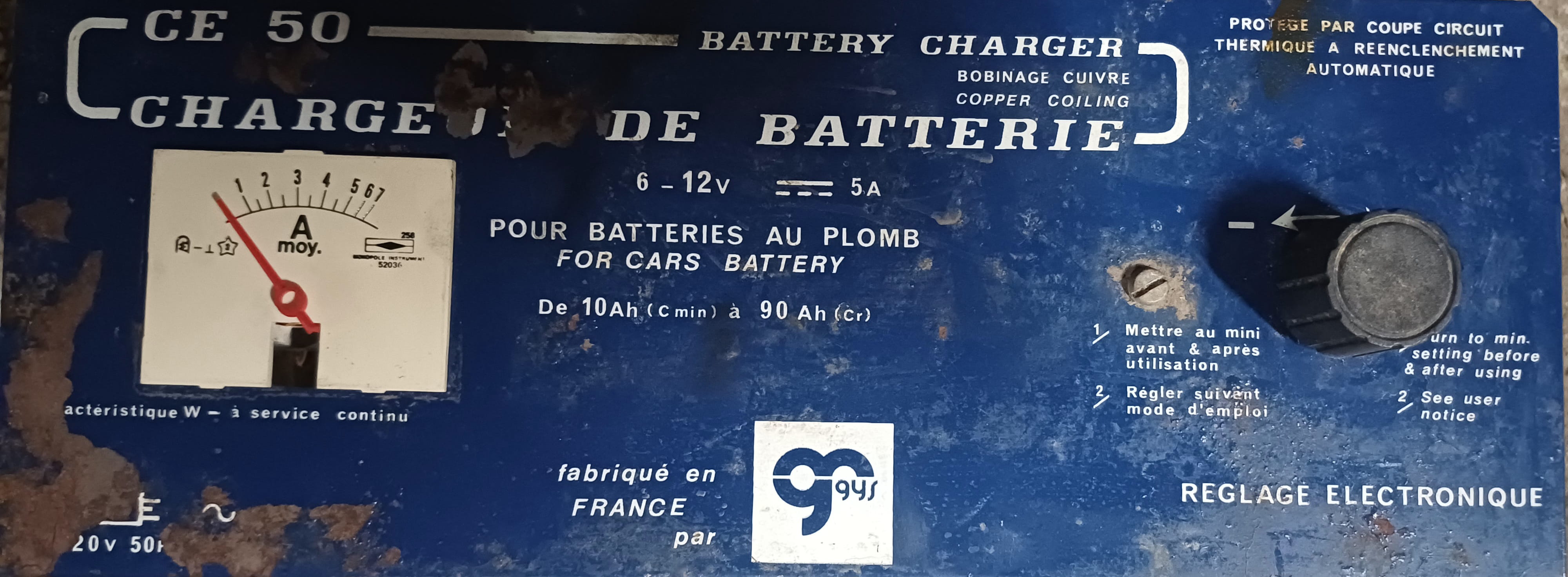 J'ai récupéré un vieux chargeur de batterie et l'ampèremetre ne fonctionne pas, j'ai vérifié, il charge mais pas de courant à l'entrée de l'ampèremetre.