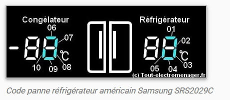 Mon réfrigérateur Samsung RFG23RESL affiche le code erreur 88 88 avec le 3eme 8 qui a la barre horizontale qui clignote.