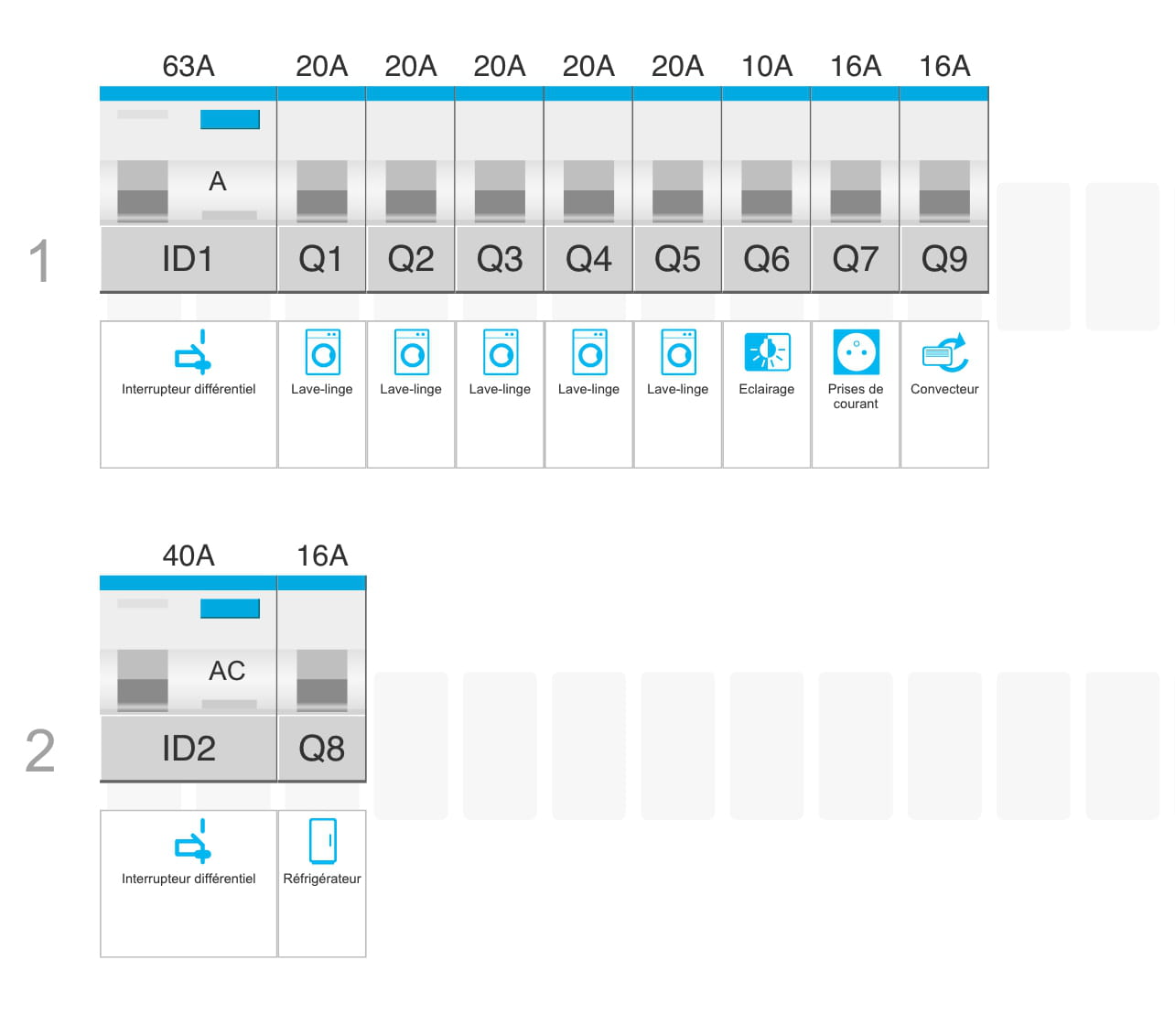 Je prends les disjoncteurs 20A pour les prises informatiques et non des laves linges