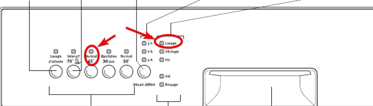 Le manuel ne parle que d'un clignotement de la LED Lavage qui serait un soucis d'arrivée d'eau. Le tuyau avec la vanne aquastop ont été changés il y a 2 mois.