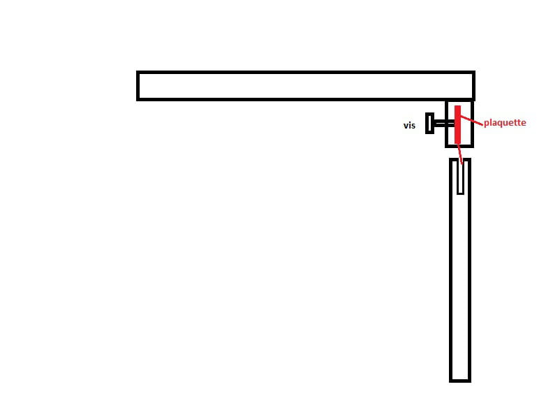 Tout ce que j'ai, c'est une petite plaque métallique (avec pieds de vis) et une vis pour chaque pied, chaque pied a en haut une fente en forme de U (de la largeur de la vis), et chaque support sous la table pour y insérer les pieds a un trou de la taille de la vis (mais sans pieds de vis).