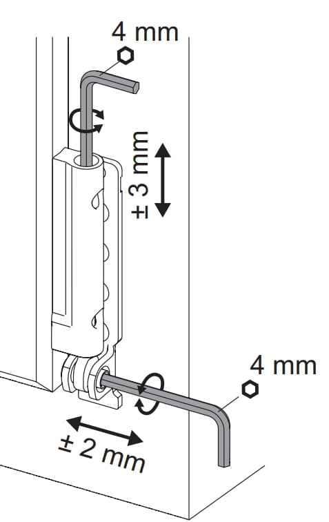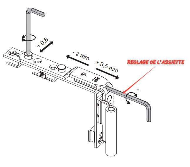 Le réglage de la hauteur de votre ouvrant se fait par le palier du bas avec une clé mâle de 4 mm. (voir le schéma).