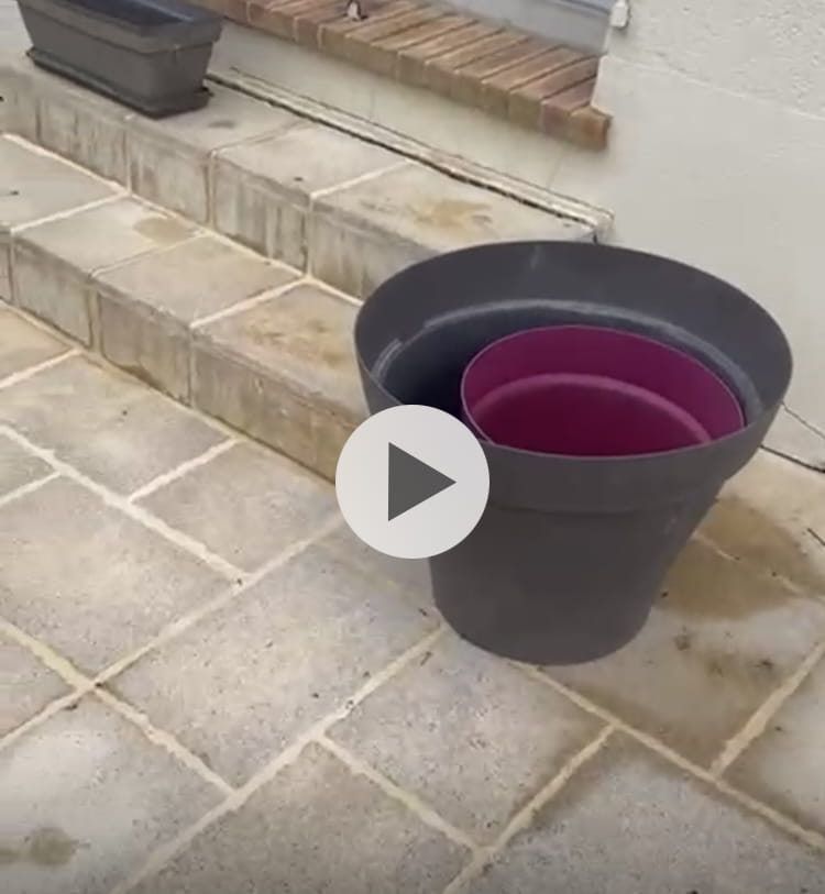 Quelques joints de carrelage de la terrasse abîmés, avec un léger affaissement localisé.