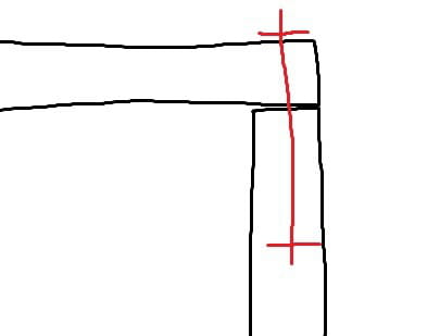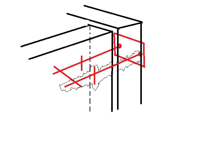 La figure de droite représente une vue horizontale : à droite le mur qui penche