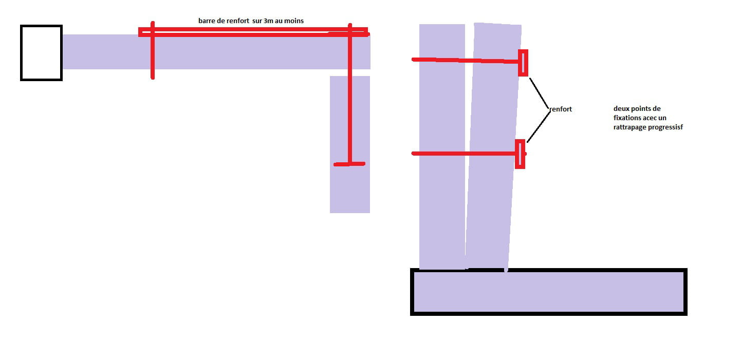 et à gauche une partie du mur que vous voulez percer sur 2m. Fig représentant les deux fixations.