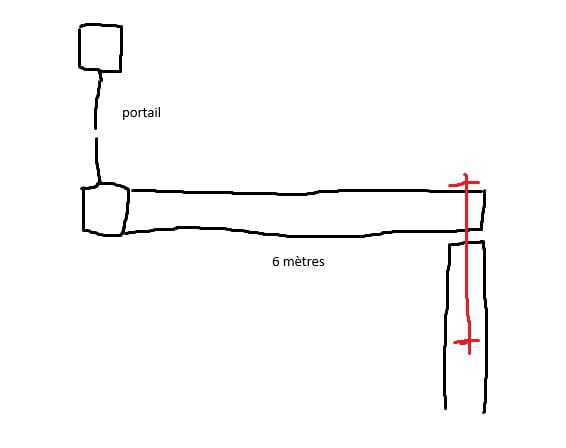 Le mur s'est écarté de 4 à 5 cm en dix ans, il n'est donc plus à la verticale. On pourrait dire qu'il se voile: Il fait 7 mètres de long et fixe un portail à l'autre extrémité et le portail n'a pas bougé (voir dessin), les vantaux ne se sont pas rapprochés. Je suspecte les racines d'un arbre situé près du coin des deux murs d'en être responsables