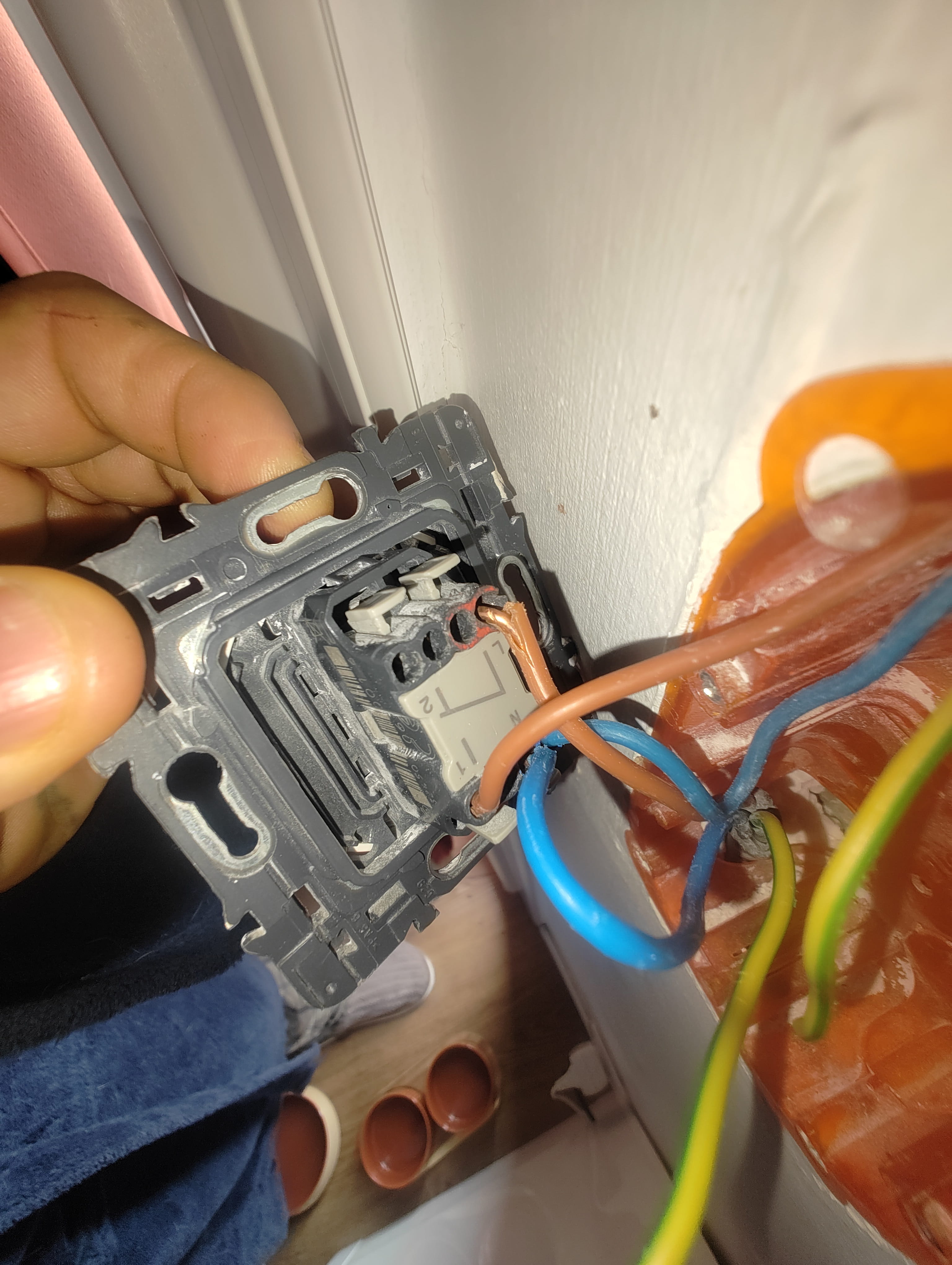 Je n'ai pas touché à autre chose que l'interrupteur de la lumière et une prise électrique. Et à ce niveau-là, il n'y a vraisemblablement que le fil de terre qui appartient au store ou du moins est en contact avec lui. La prise et la lumière fonctionnent, peu importe ce sur quoi la terre du store est branchée.