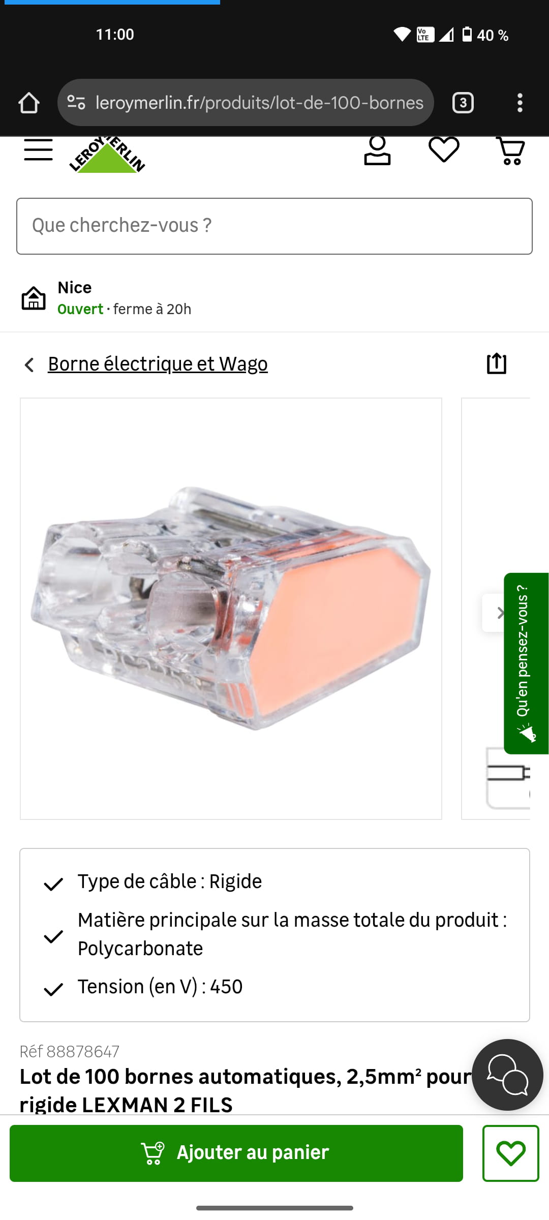 Avant que je mette le wago comme sur la photo, les 2 terres (store et prise) étaient insérés côte à côte dans un petit objet comme sur la photo. Ça sert à quoi cette sorte de domino ? Et si oui, lequel je dois acheter pour alimenter correctement mon store ?