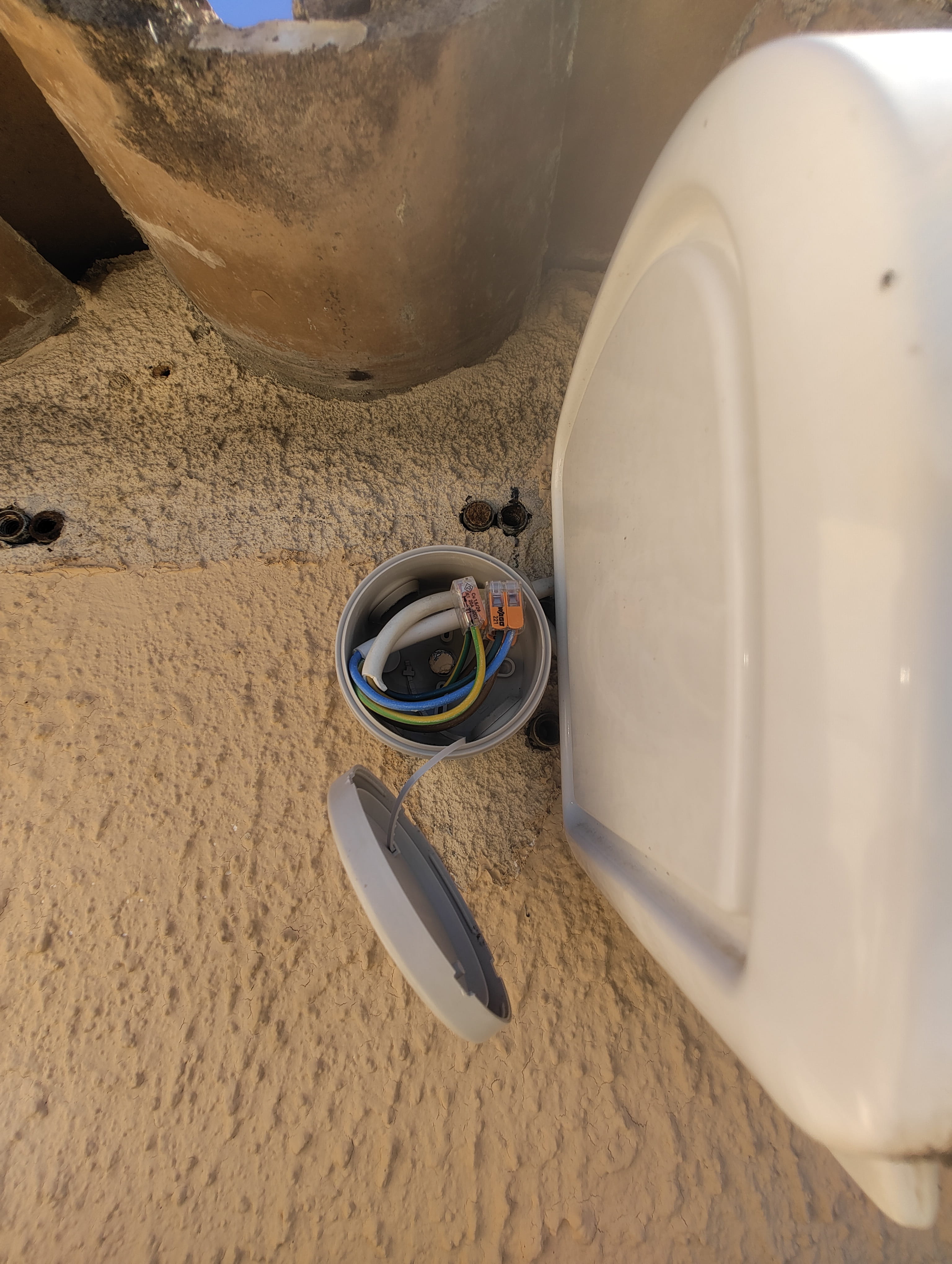 Et je suppose ça aussi parce que là où il y a l'interrupteur de l'ampoule, il y avait aussi l'interrupteur qui commande le store. Cet interrupteur que j'ai viré parce qu'il n'était plus branché puisque c'est la télécommande qui commande le store désormais.