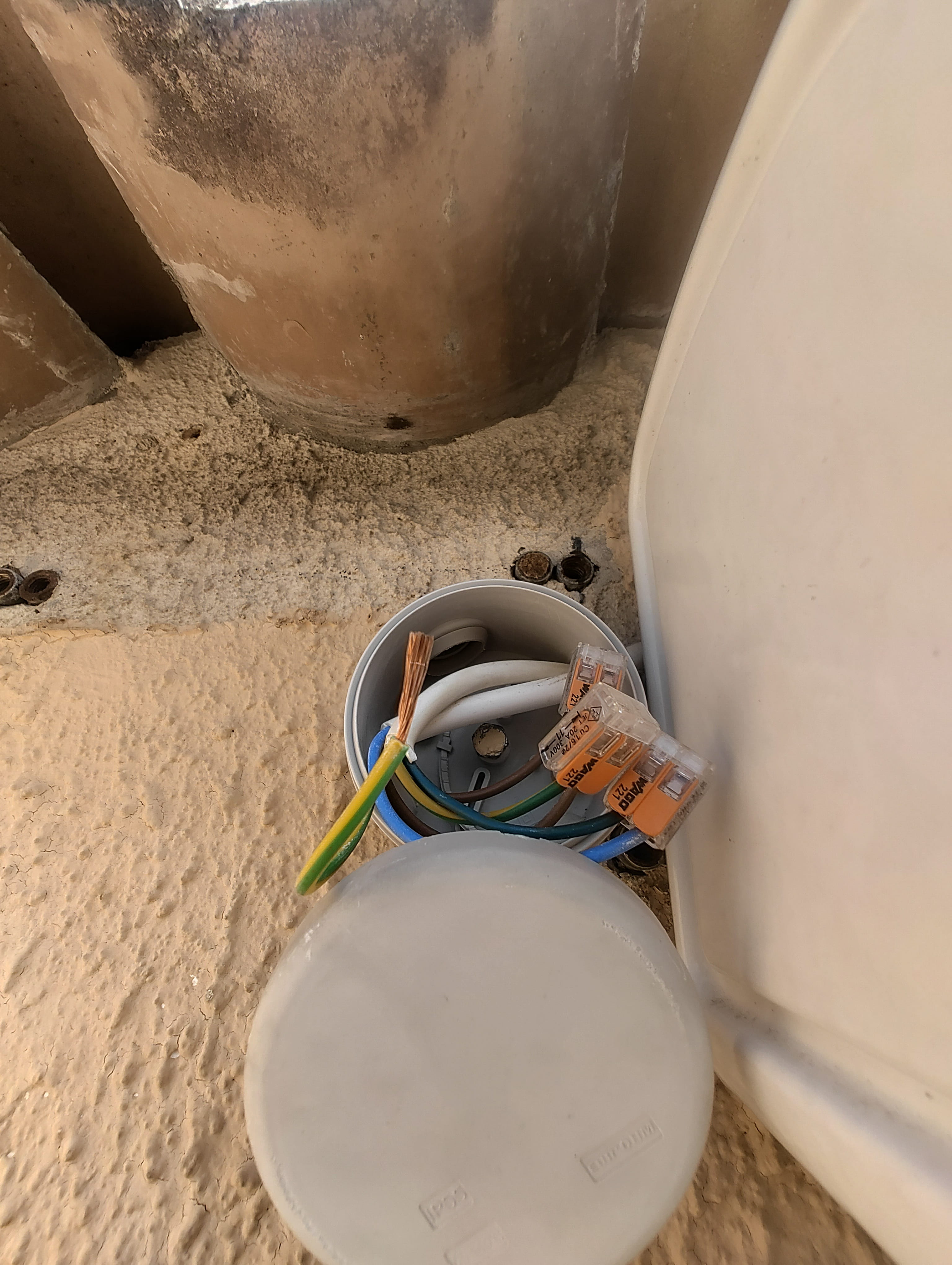 Je sais qu'il y avait un wago au niveau de l'interrupteur avec 2 fils vert/jaune. Un wago avec 4 ou 5 entrées et les deux fils n'étaient pas sur des wagos côte à côte.